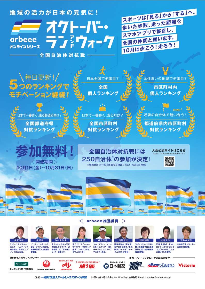 【10/1(金)からスタート!】オクトーバー・ラン&ウォーク「全国都道府県対抗戦」の参加について