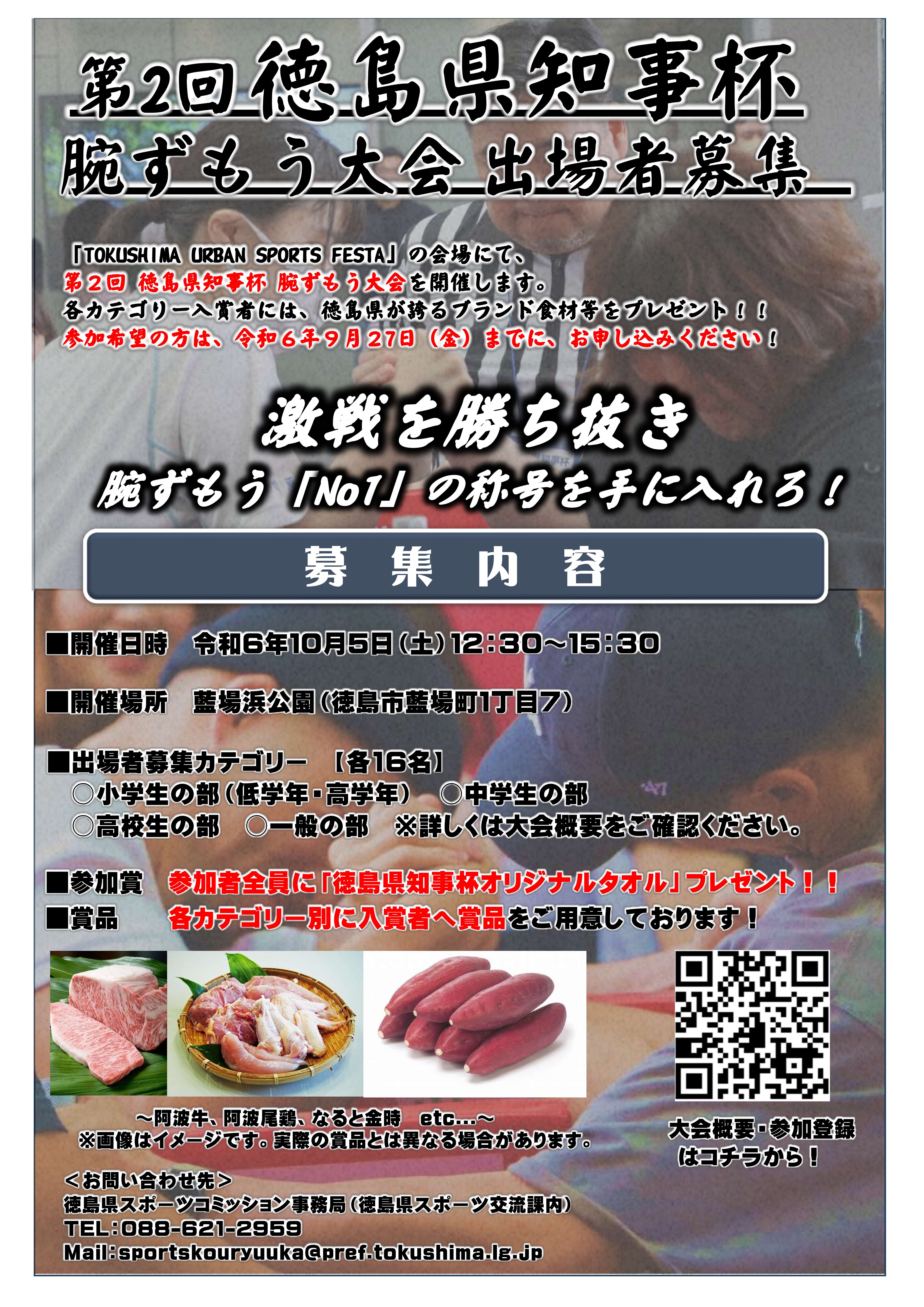 更には、「ニュースポーツ体験」や「体力測定」、「第2回徳島県知事杯腕ずもう大会」など目白押しのコンテンツをお楽しみ下さい!